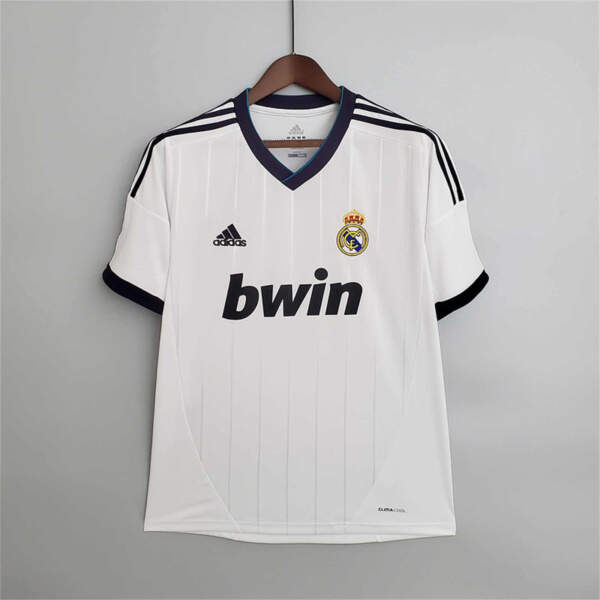 Revive la historia del Real Madrid con este conjunto retro de la temporada 2012-2013, diseñado especialmente para niños. Incluye camiseta y pantalón corto en color blanco con detalles en azul marino, patrocinio Bwin y el escudo oficial del club. Fabricado por Adidas bajo la tecnología Climacool, este conjunto ofrece comodidad y transpirabilidad, perfecto tanto para el juego como para coleccionistas de camisetas clásicas.