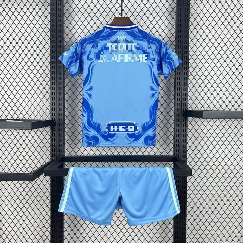🐯🔵⚽ Conjunto Niño Tigres UANL Segunda Equipación 2025-2026 – Elegancia felina para los más pequeños