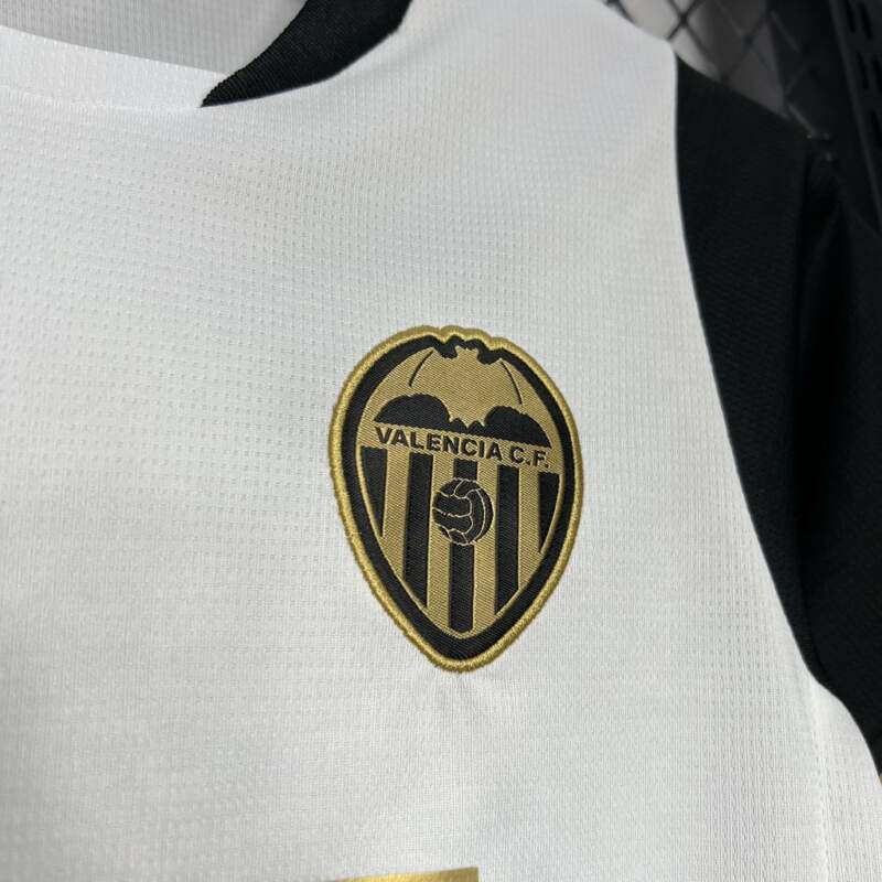 - Detalles emblemáticos: Incluye el escudo oficial del Valencia CF bordado en el pecho y detalles gráficos que rinden homenaje a la ciudad y la cultura valenciana.