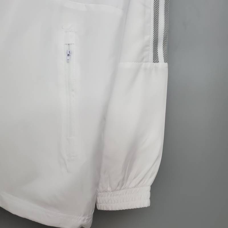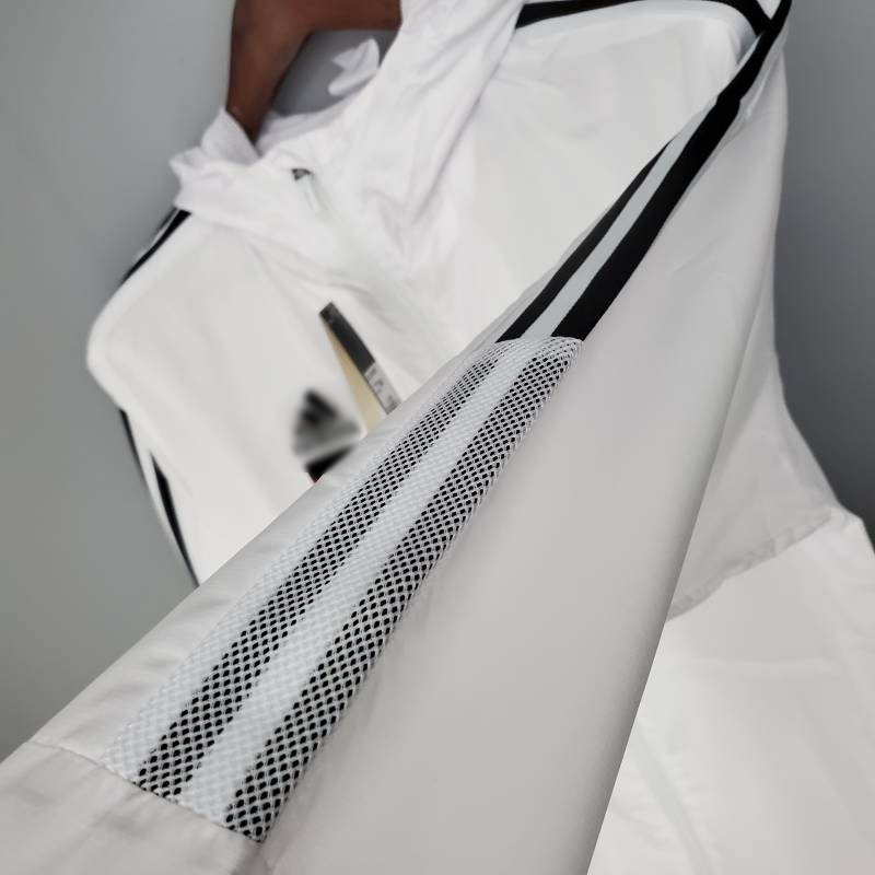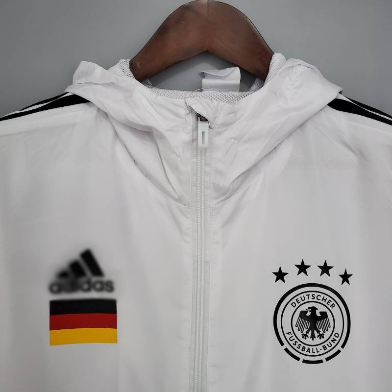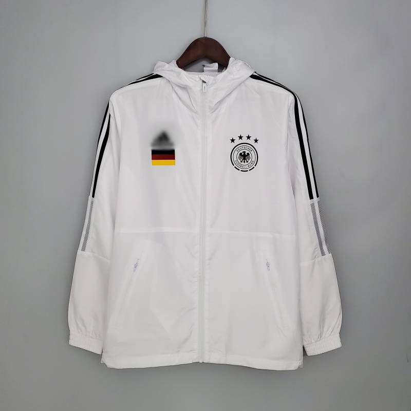 Este nuevo cortavientos de la selección alemana te protege del viento y la lluvia gracias a su tejido con tecnología que bloquea la lluvia y el viento. El forro de malla favorece la ventilación y mantiene la piel seca. El diseño estampado se inspira en la camiseta de la tercera equipación del club.