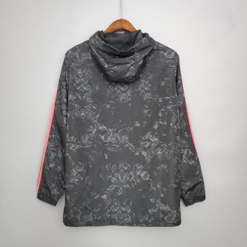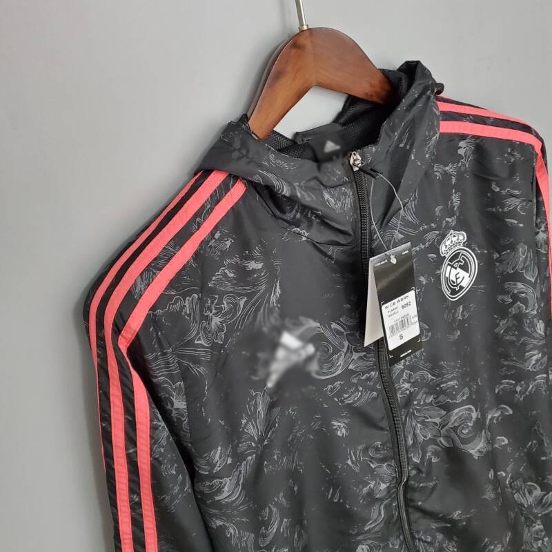 Este cortavientos del Real Madrid te protege del viento y la lluvia gracias a su tejido con tecnología que bloquea la lluvia y el viento. El forro de malla favorece la ventilación y mantiene la piel seca. El diseño estampado se inspira en la camiseta de la tercera equipación del club.