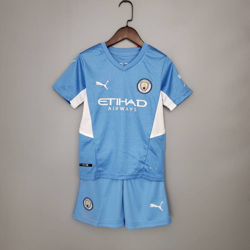Las estrellas del futuro necesitan una equipación acorde a su potencial. Este conjunto de la primer equipación del Manchester City incluye una camiseta y un pantalón corto, para que se puedan lucir como sus estrellas y referentes.