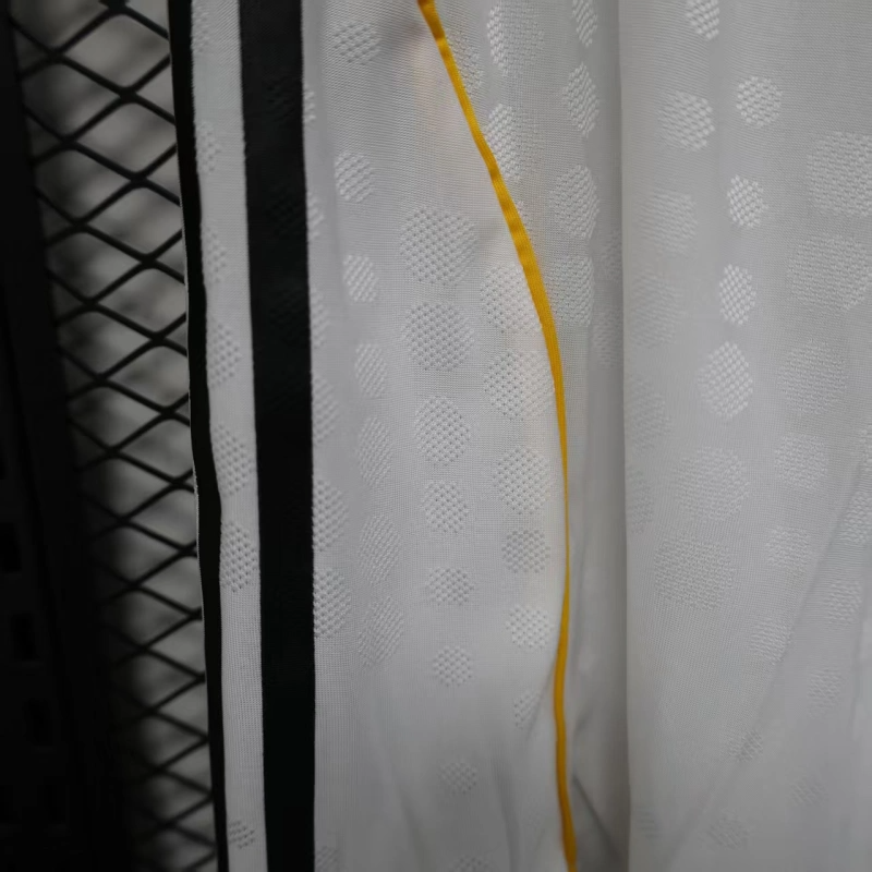 ⚪💛 Diseño impecable: Blanco clásico con detalles dorados, escudo bordado y materiales de alta calidad para sentirte como un verdadero madridista.