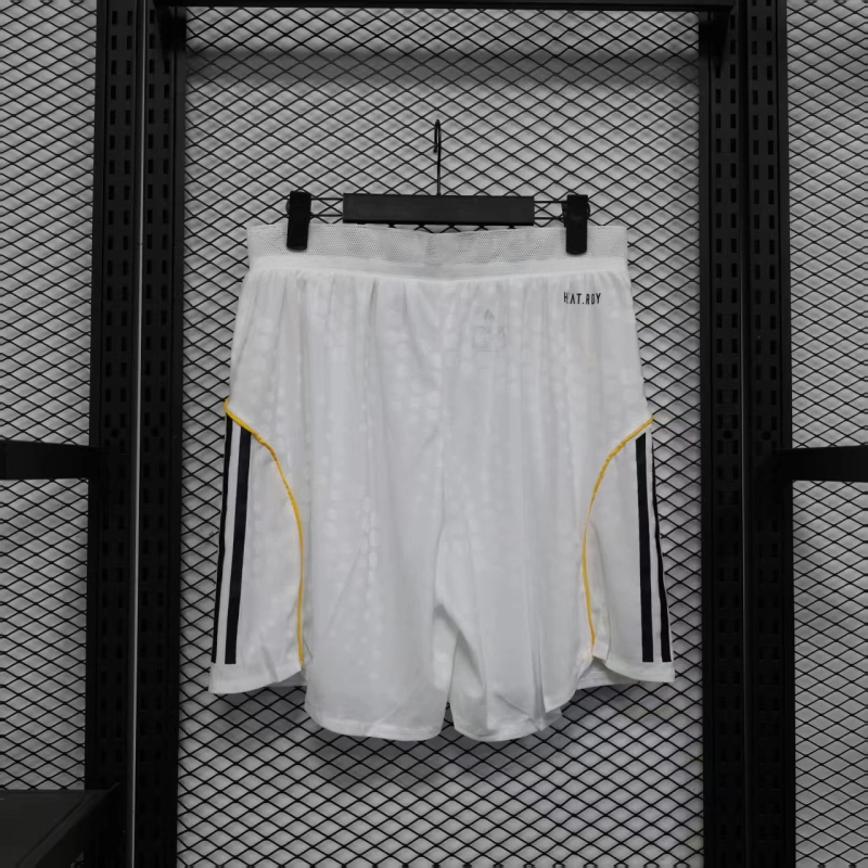 ⚪💛 Pantalón Corto Real Madrid Primera Equipación 2025-2026 – Tradición blanca con detalles dorados que reflejan la grandeza del club 👑⚽