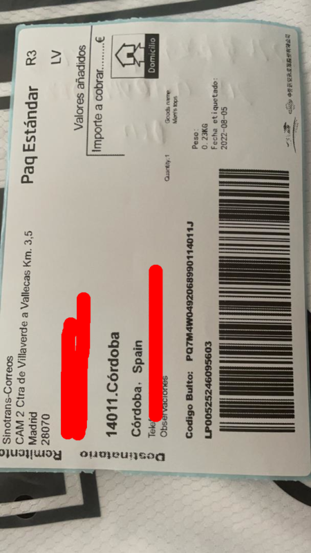 • Código de seguimiento comprobado.