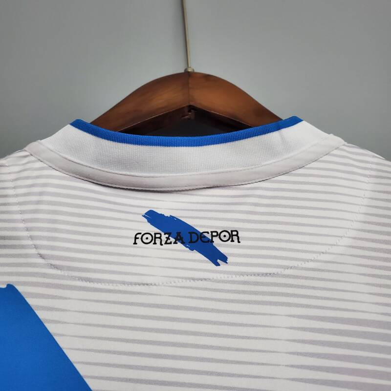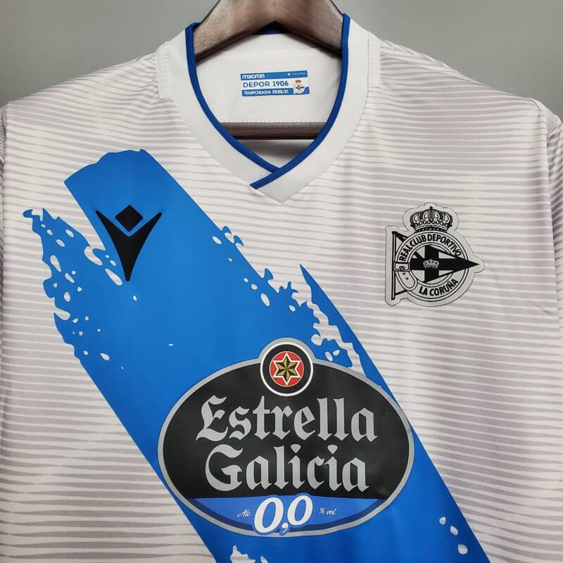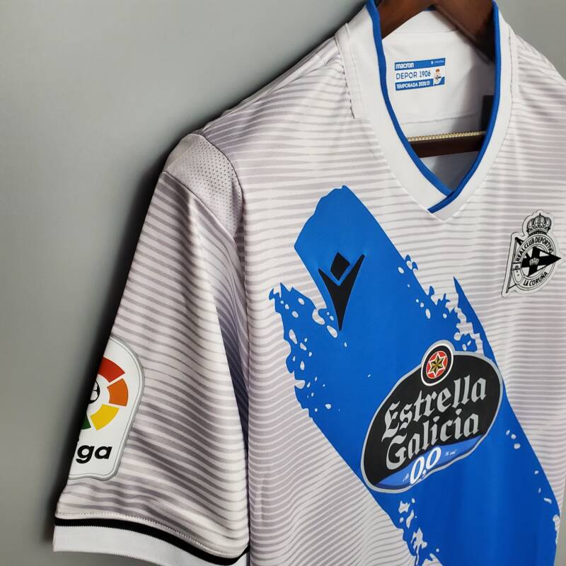 Anima a tu equipo con la segunda equipación del Deportivo de La Coruña. El tejido mantiene la frescura tanto si estás animando en las gradas como si estás jugando sobre el campo.