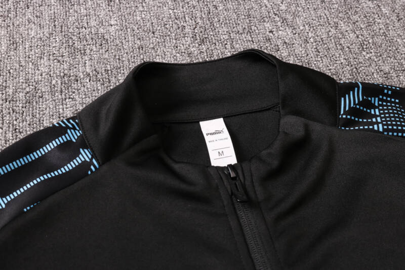 Esta nueva chaqueta del Manchester City presenta un corte entallado y se ha confeccionado en tejido resistente y transpirable, que expulsa el sudor de la piel.