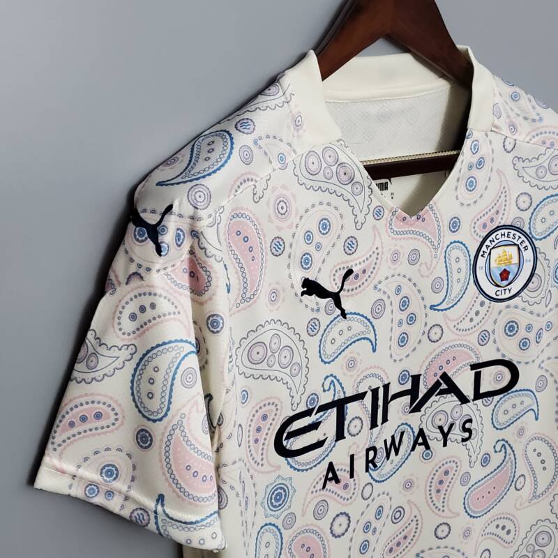 Anima a tu equipo con la tercer equipación del Manchester City. El tejido mantiene la frescura tanto si estás animando en las gradas como si estás jugando sobre el campo.
