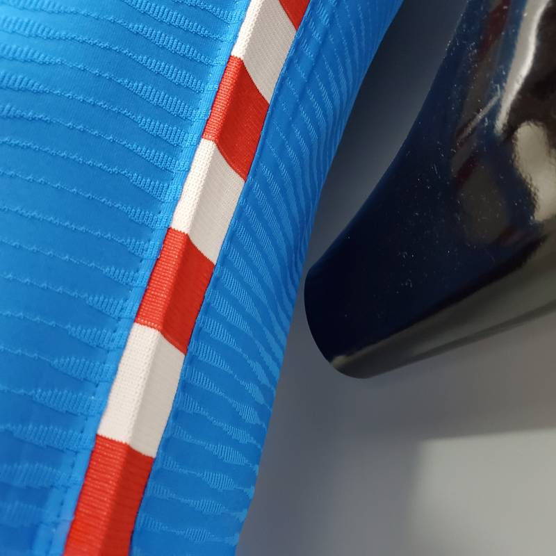 La Camiseta del Atlético de Madrid Tercera Equipación de la temporada 2021-22 tiene un diseño elástico y estilizado se adapta a tus movimientos y el tejido transpirable capilariza el sudor y se seca excepcionalmente rápido para ofrecer el máximo rendimiento. La Camiseta del Atlético de Madrid Tercera equipación de la temporada 2021/22 es de color Celeste, blanco, azul y rojo, se ve una hermosa combinación de colores y ofrecemos la calidad Original.