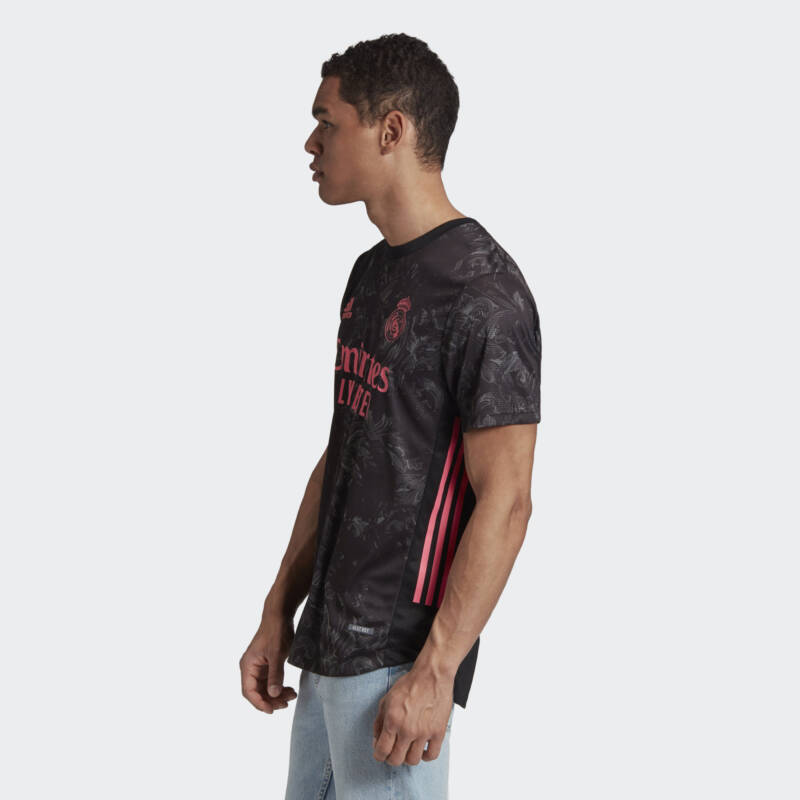 La camiseta de la tercera equipación del Real Madrid ofrece el mismo diseño que utilizan tus jugadores favoritos. El diseño elástico y estilizado se adapta a tus movimientos y el tejido transpirable capilariza el sudor y se seca excepcionalmente rápido para ofrecer el máximo rendimiento.